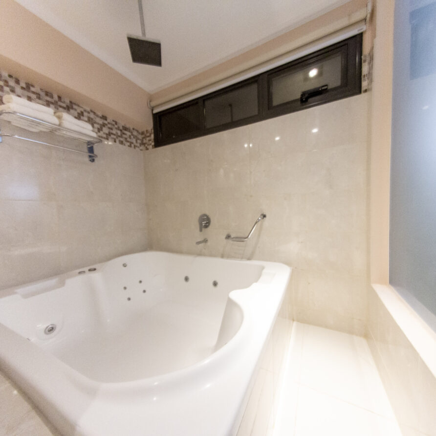 Además un baño con tocador doble, y un lujoso jacuzzi con hidromasaje para completar un relajante ambiente, ameno y con una decoración a la altura.