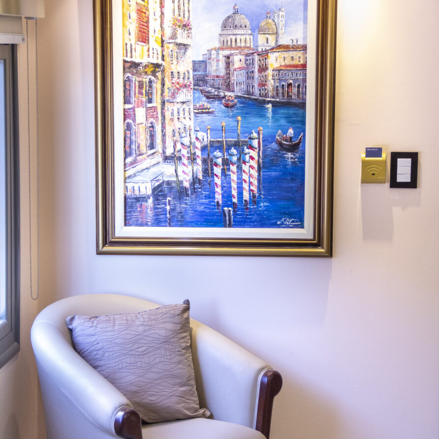 Habitación de Lujo de estilo moderno, equipada con una cama King Size. Un espacio amplio para un descanso pleno, sector de lectura con iluminación natural, placares de gran capacidad. Para el disfrute de un buen momento es infaltable contar con un Nespresso.